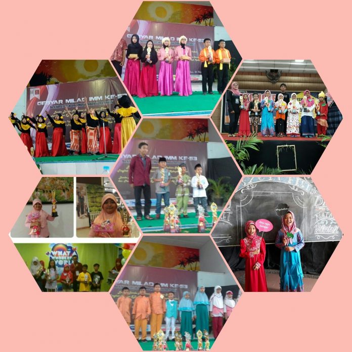 muhkudus.id -Selasa (28/3) Pasalnya MI Muhammadiyah 2 Kudus Program Khusus (Mimudaku), masih dalam euforia “Gebyar Milad IMM ke-53”. Mimudaku turun tangan dalam acara yang digelar oleh IMM Al Fikr tersebut. Tak disangka anak-anak Tim Padus Mimudaku Ceria mendapat hasil yang cukup memuaskan. “Awalnya kami memang tidak yakin, bahwa tim kami cukup dipertimbangkan untuk dapat ikut andil dalam kejuaraan padus SD/MI di Amal Usaha Muhammadiyah se-Kabupaten Kudus. Berawal dari pergantian personil, dan banyak pula personil inti yang tak dapat ikut serta dikarenakan kondisi badan yang kurang fit. Serta masih ada beberapa kendala yang tak dapat disebutkan satu per satu. Namun, lepas dari semua itu, tim kami memberikan penampilan yang begitu memukau. Bagi kami mereka adalah sang juara (terlepas dari juara yang disematkan kepada mereka, yakni juara 3)” karena Bumi ini memiliki melodi bagi mereka yang mau mendengarkan (mengutip dari Penulis William Shakespeare), kata koordinator Ektra Seni Musik.